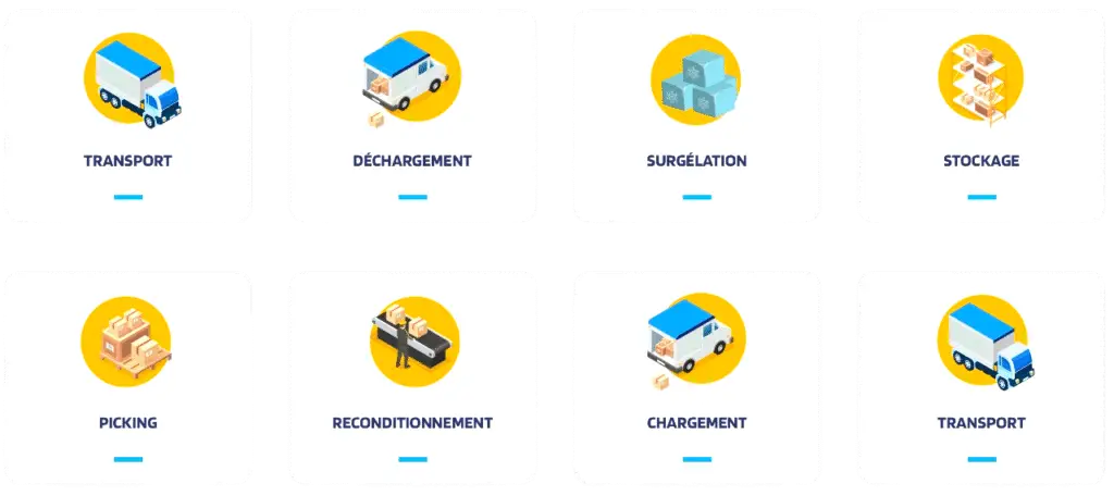 Notre savoir-faire ne s’arrête pas au stockage : nous assurons également le (dé)chargement (y compris de conteneurs en vrac), la surgélation rapide, la décongélation rapide, le picking, les vérifications de poids, le reconditionnement, ainsi que le transport frigorifique, en amont comme en aval de votre chaîne logistique.